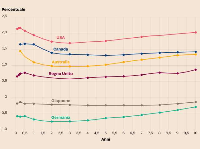 Negli ultimi tempi le curve dei rendimenti di molte economie avanzate hanno cambiato forma spostandosi verso il basso, riducendo la loro volatilità e la loro pendenza fino ad appiattirsi se non addirittura invertirsi con tassi d'interesse a breve superiori a quelli a lunga scadenza.